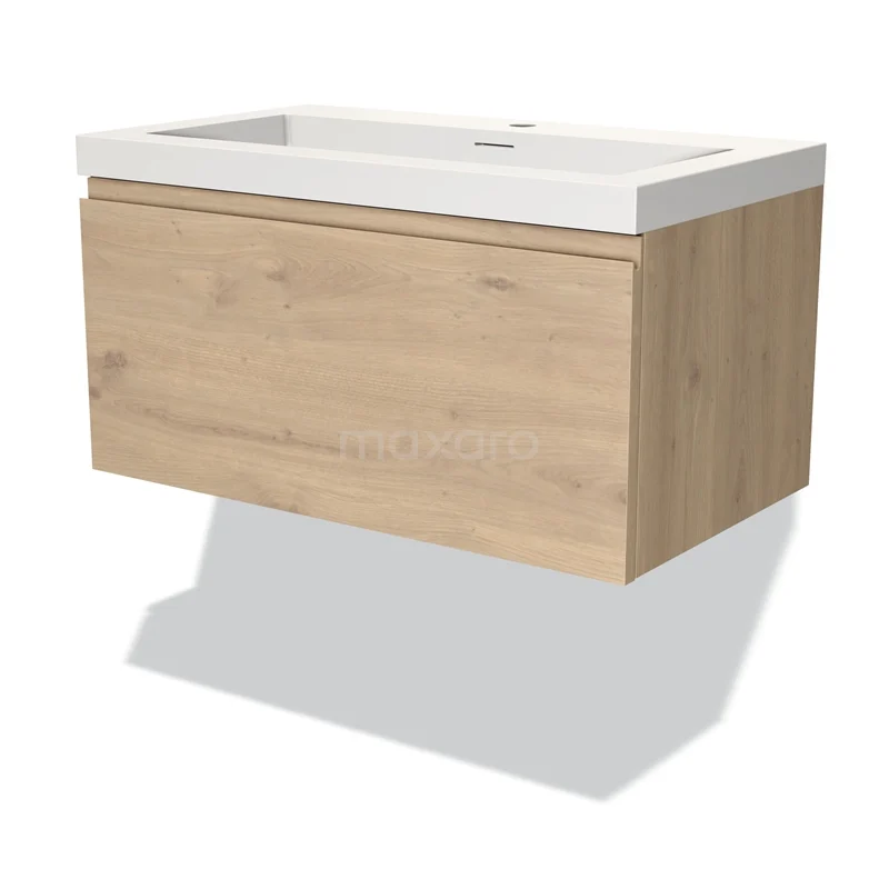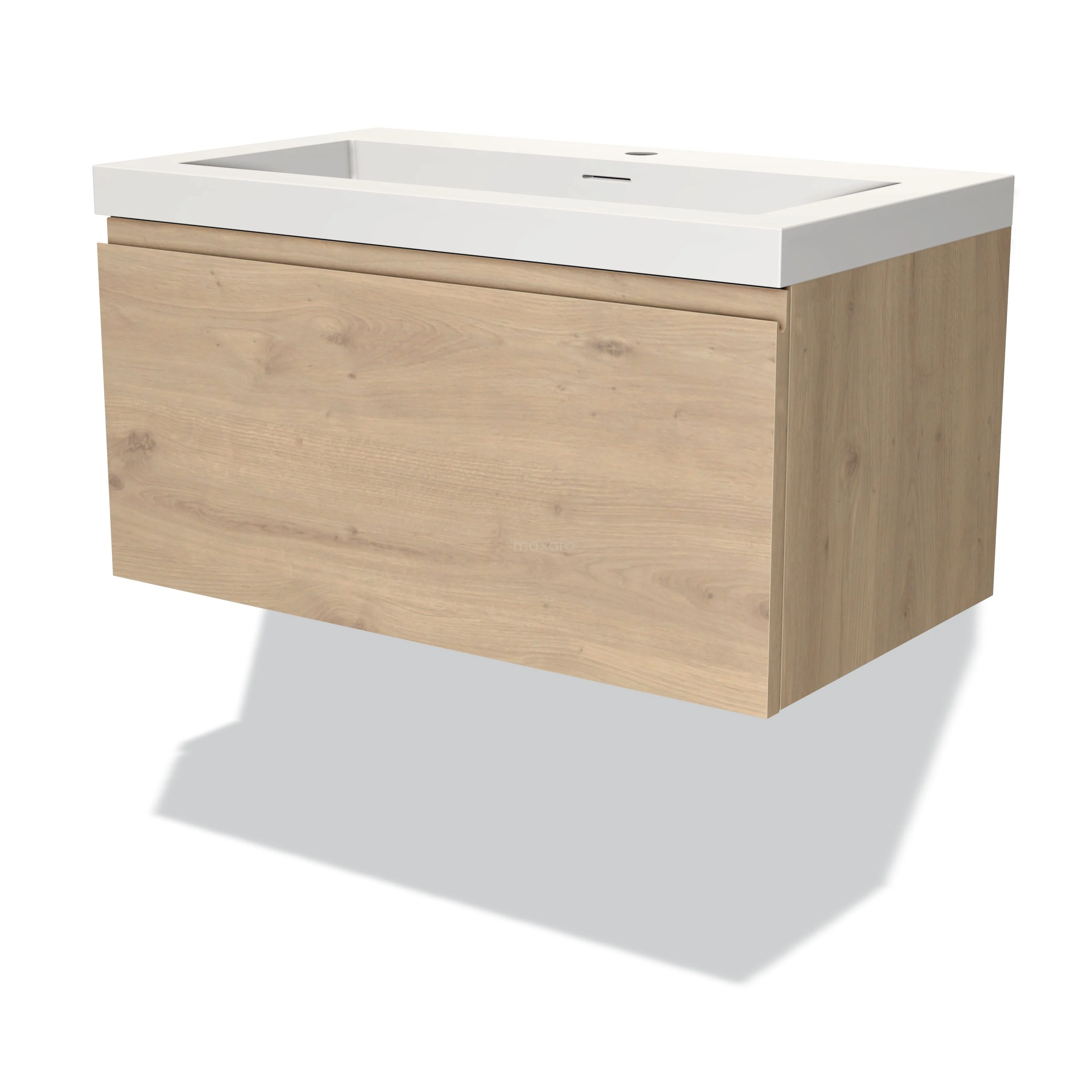 Modulo Bathroom furniture with sink | 80 cm Light brown oak Handle-less front Solid surface 1 drawer