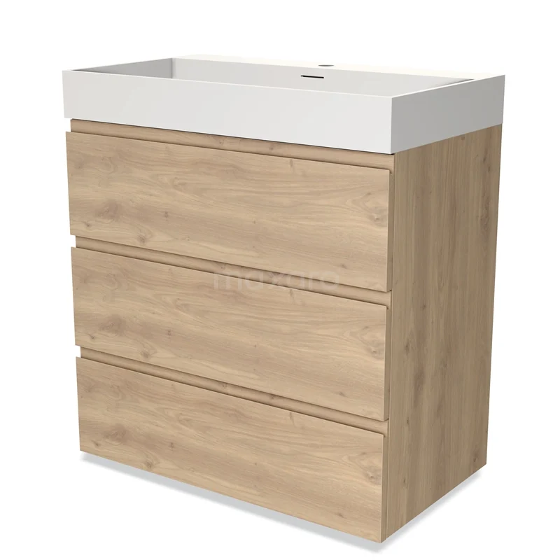 Modulo Bathroom furniture with sink | 80 cm Light brown oak Handle-less front Solid surface 3 drawers