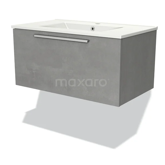 Modulo Bathroom furniture with sink | 80 cm Light grey concrete Flat front Ceramic 1 drawer