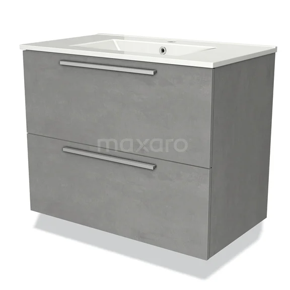 Modulo Bathroom furniture with sink | 80 cm Light grey concrete Flat front Ceramic 2 Stacked drawers