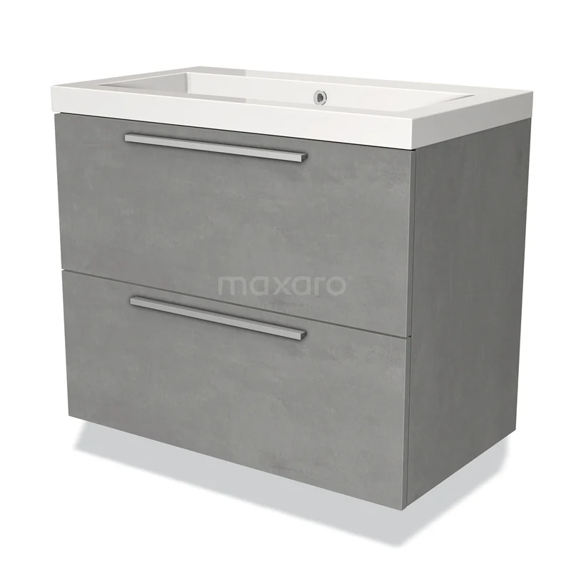 Modulo Bathroom furniture with sink | 80 cm Light grey concrete Flat front Mineral marble 2 Stacked drawers