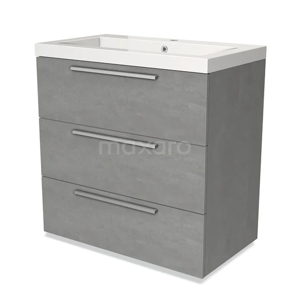 Modulo Bathroom furniture with sink | 80 cm Light grey concrete Flat front Mineral marble 3 drawers