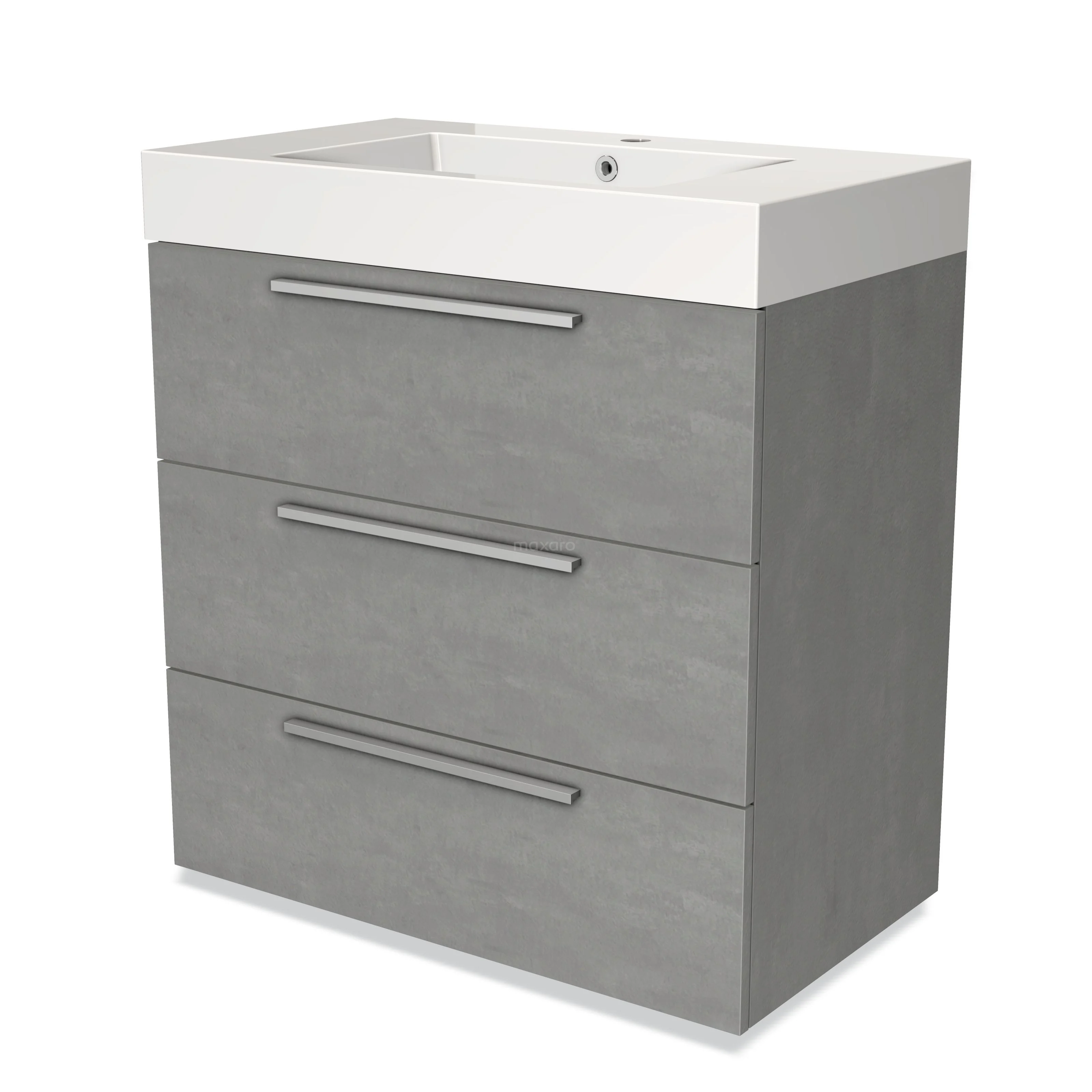 Modulo Bathroom furniture with sink | 80 cm Light grey concrete Flat front Mineral marble 3 drawers