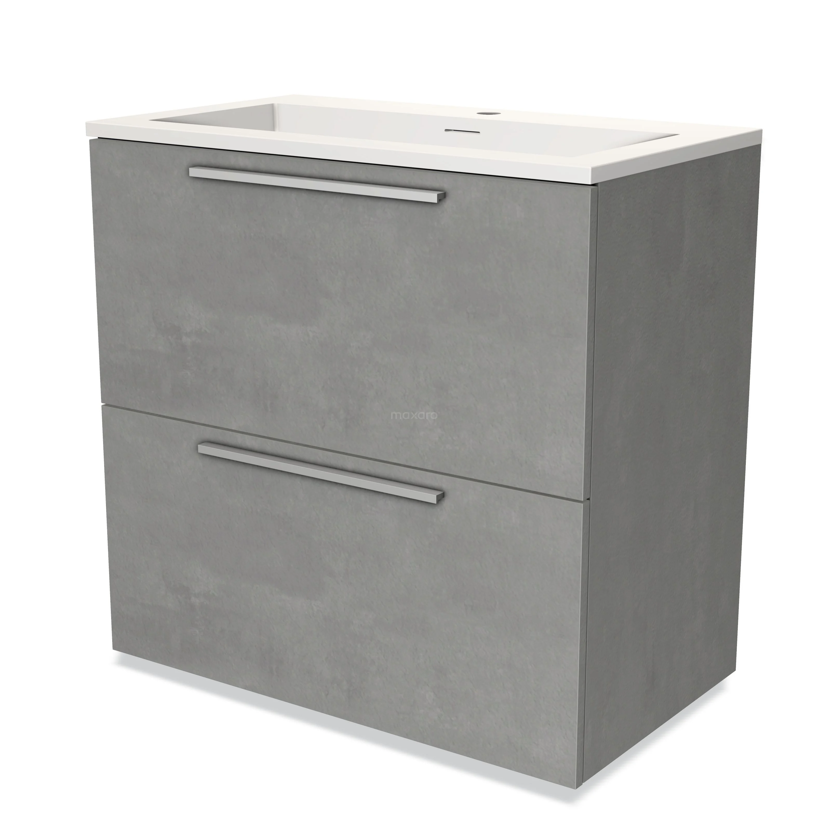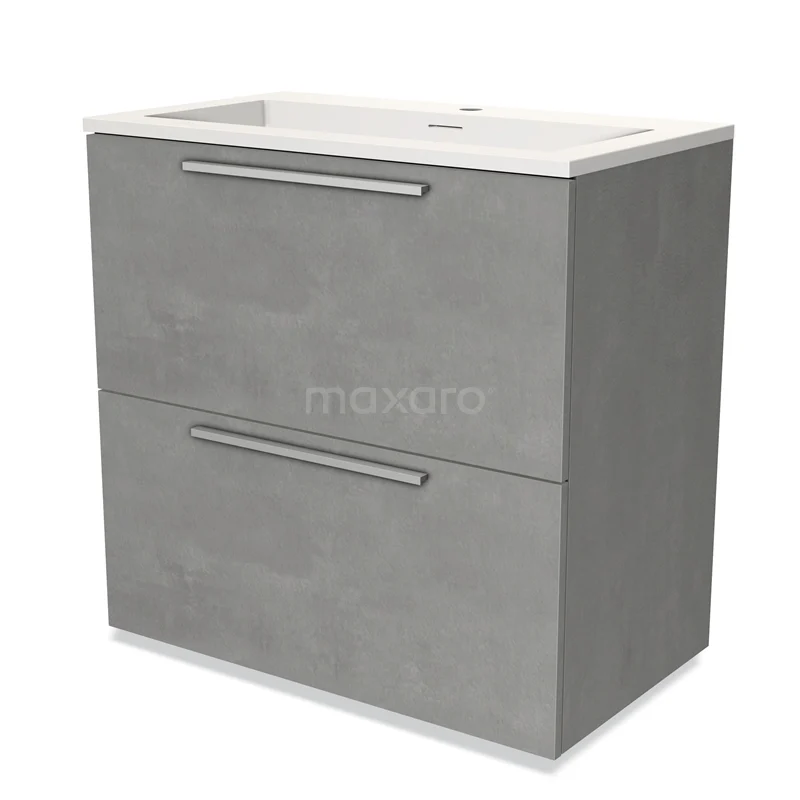 Modulo Bathroom furniture with sink | 80 cm Light grey concrete Flat front Solid surface 2 stacked drawers under each other