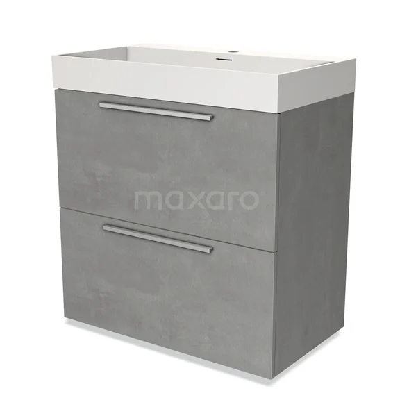 Modulo Bathroom furniture with sink | 80 cm Light grey concrete Flat front Solid surface 2 stacked drawers under each other