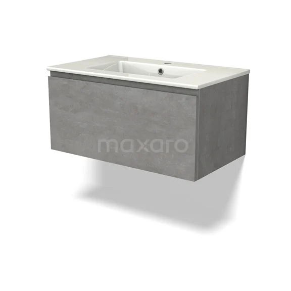 Modulo Bathroom furniture with sink | 80 cm Light grey concrete Handle-less front Ceramic 1 drawer
