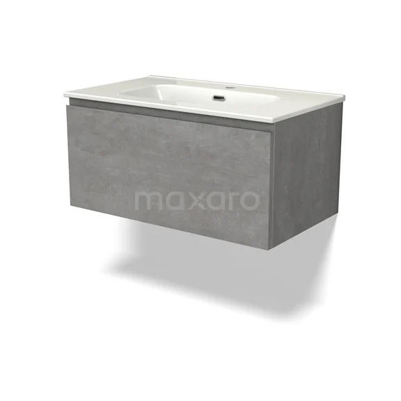 Modulo Bathroom furniture with sink | 80 cm Light grey concrete Handle-less front Ceramic 1 drawer