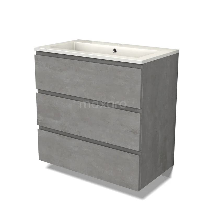 Modulo Bathroom furniture with sink | 80 cm Light grey concrete Handle-less front Mineral marble 3 drawers