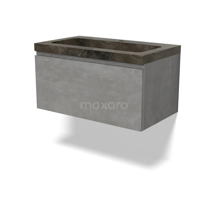 Modulo Bathroom furniture with sink | 80 cm Light grey concrete Handle-less front Natural stone 1 drawer