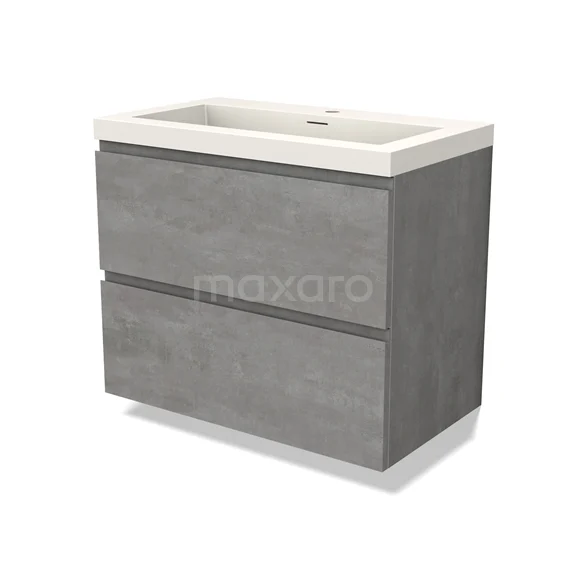 Modulo Bathroom furniture with sink | 80 cm Light grey concrete Handle-less front Solid surface 2 Stacked drawers