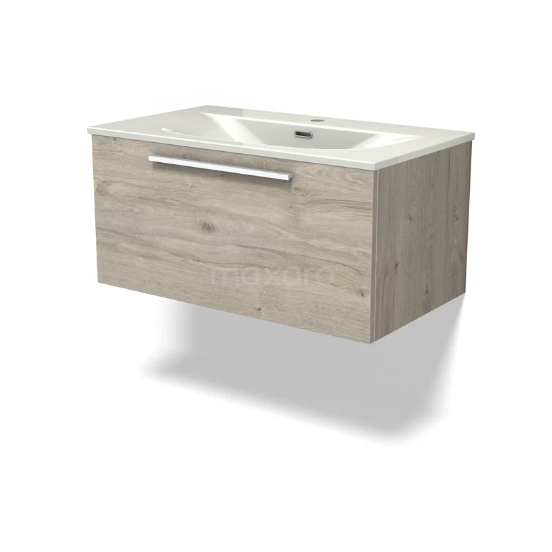 Modulo Bathroom furniture with sink | 80 cm Light grey oak Flat front Ceramic 1 drawer