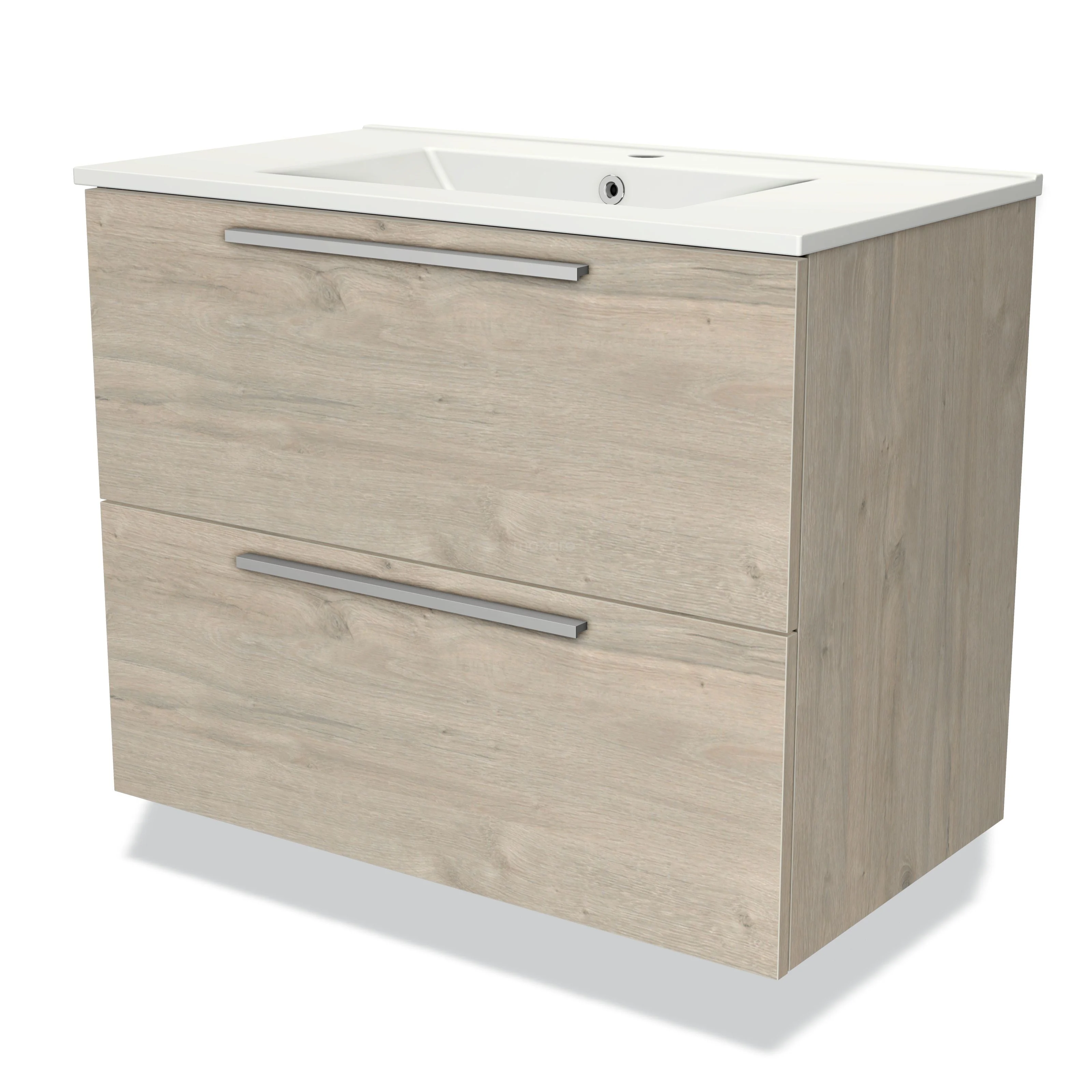 Modulo Bathroom furniture with sink | 80 cm Light grey oak Flat front Ceramic 2 Stacked drawers