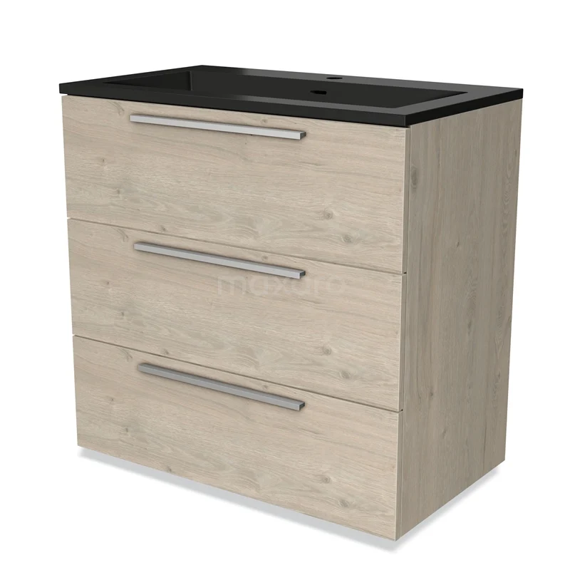 Modulo Bathroom furniture with sink | 80 cm Light grey oak Flat front Quartz 3 drawers
