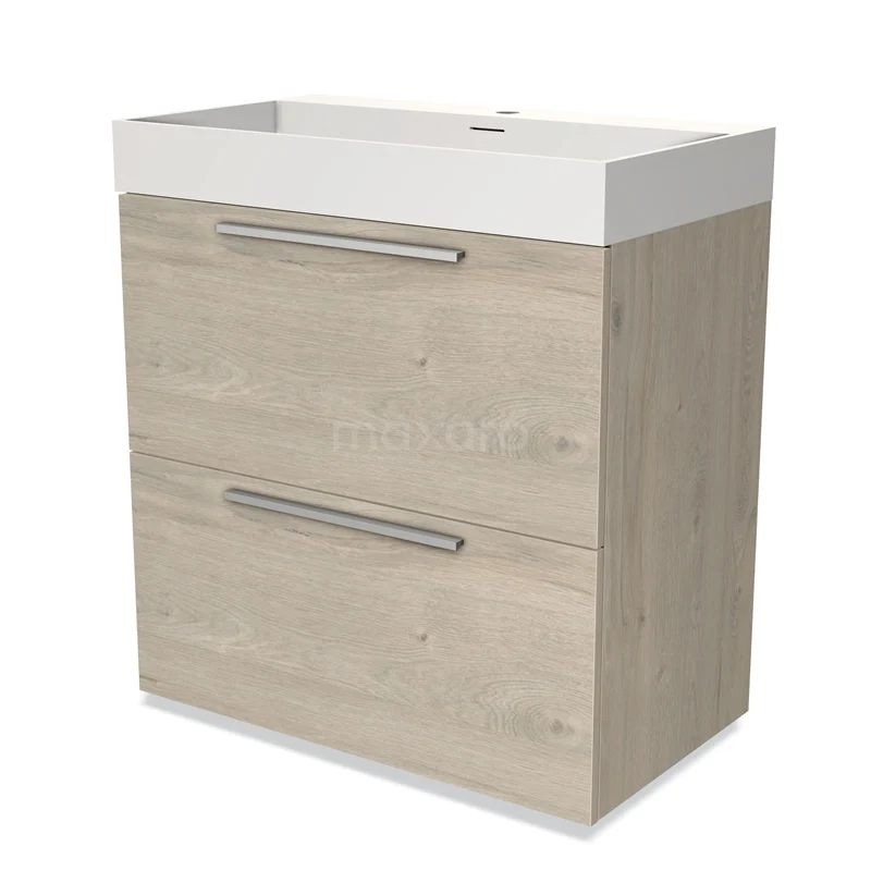 Modulo Bathroom furniture with sink | 80 cm Light grey oak Flat front Solid surface 2 stacked drawers under each other