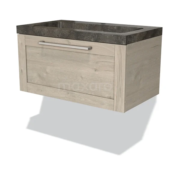 Modulo Bathroom furniture with sink | 80 cm Light grey oak Frame front Natural stone 1 drawer