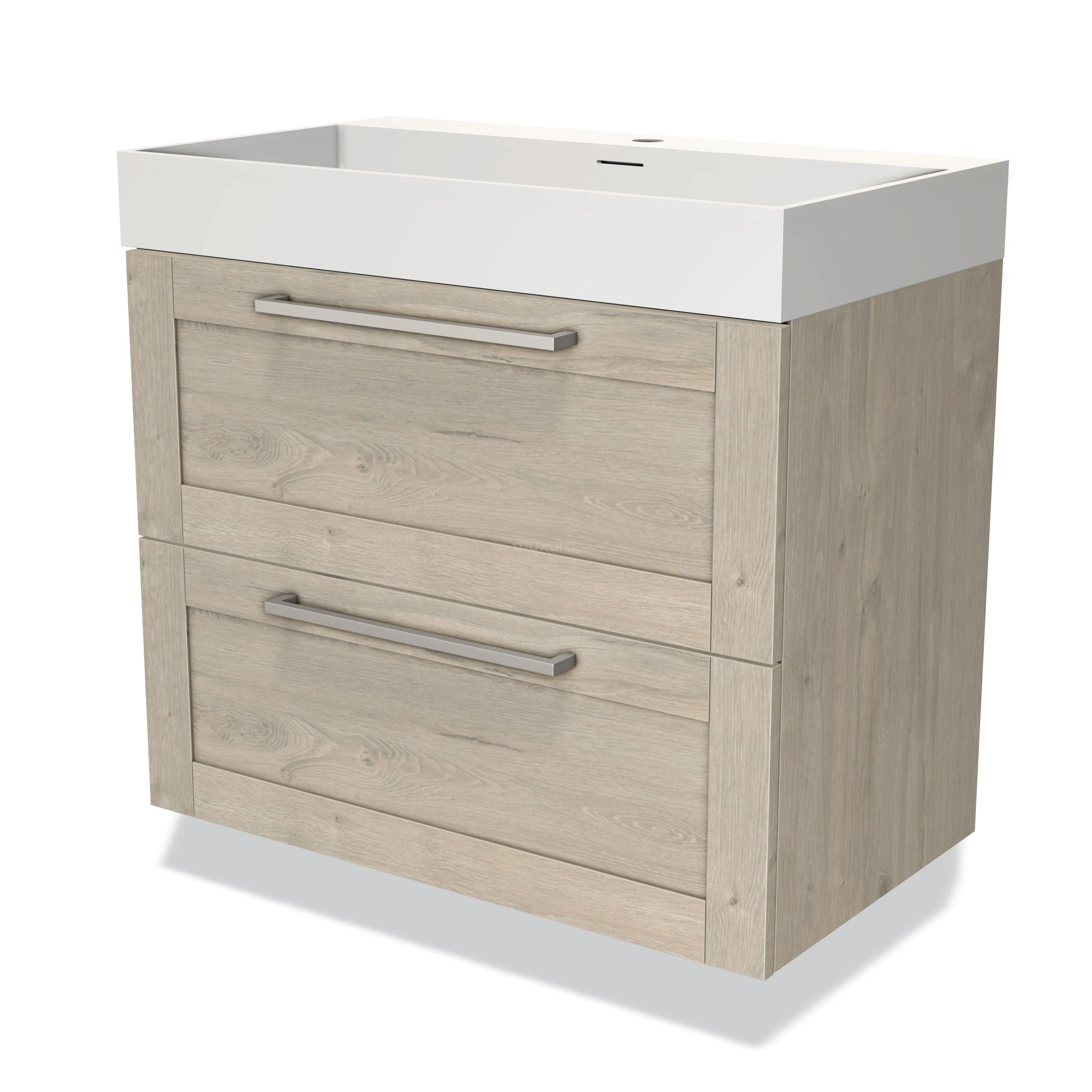 Modulo Bathroom furniture with sink | 80 cm Light grey oak Frame front Solid surface 2 Stacked drawers