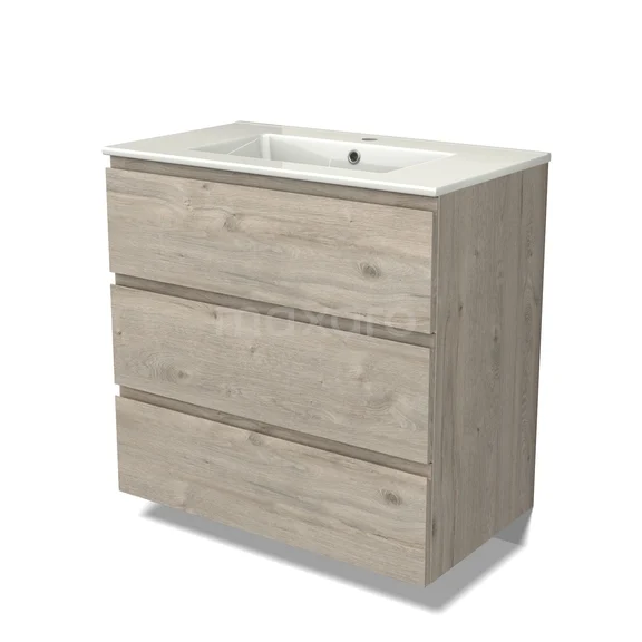 Modulo Bathroom furniture with sink | 80 cm Light grey oak Handle-less front Ceramic 3 drawers