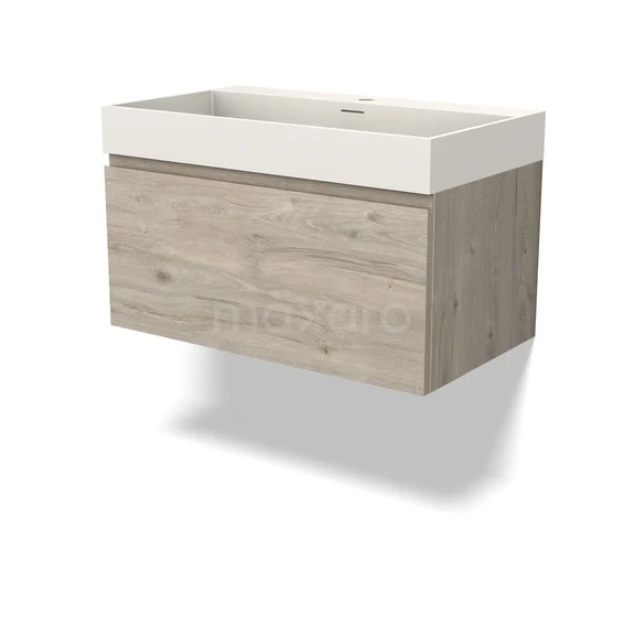 Modulo Bathroom furniture with sink | 80 cm Light grey oak Handle-less front Solid surface 1 drawer