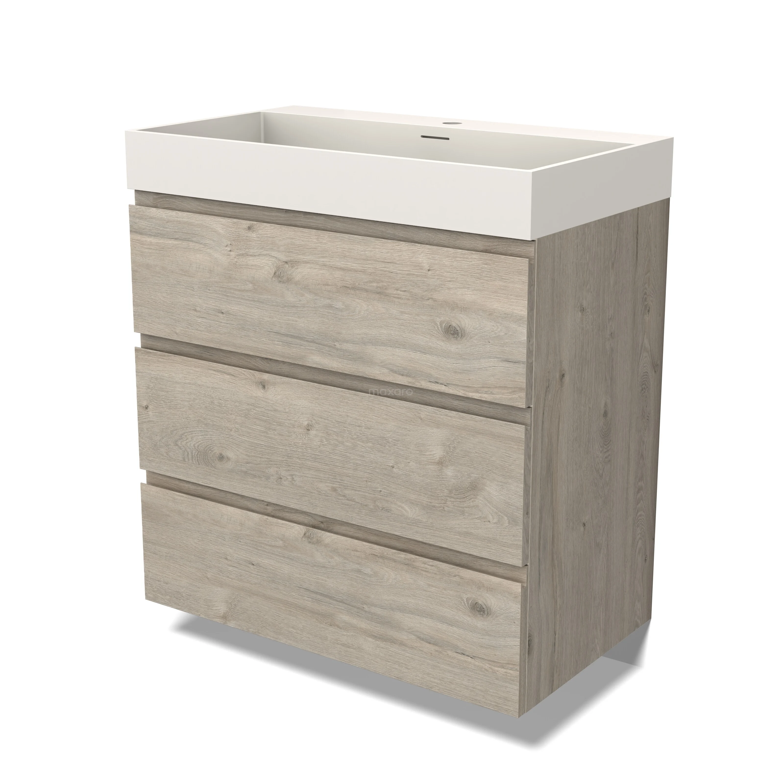 Modulo Bathroom furniture with sink | 80 cm Light grey oak Handle-less front Solid surface 3 drawers