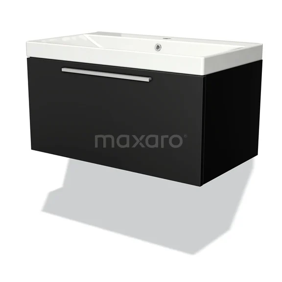 Modulo Bathroom furniture with sink | 80 cm Matte black Flat front Ceramic 1 drawer