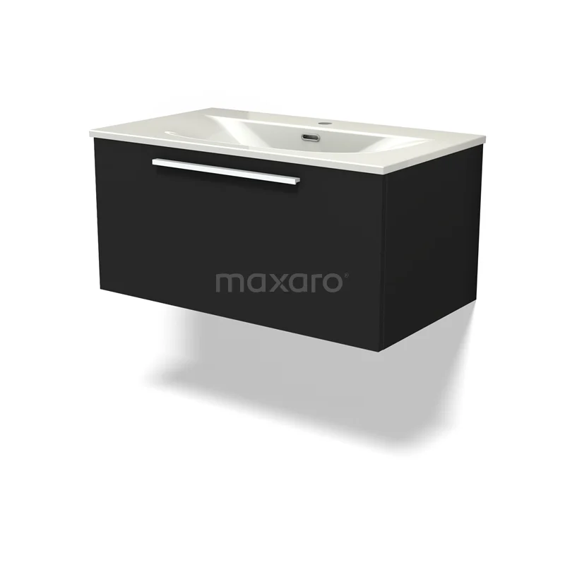 Modulo Bathroom furniture with sink | 80 cm Matte black Flat front Ceramic 1 drawer