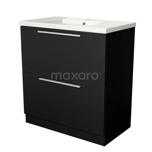 Modulo Bathroom furniture with sink | 80 cm Matte black Flat front Ceramic 2 high drawers standing drawers under each other