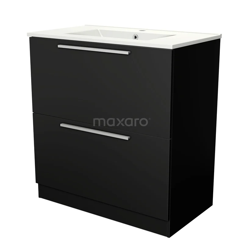 Modulo Bathroom furniture with sink | 80 cm Matte black Flat front Ceramic 2 high drawers standing drawers under each other