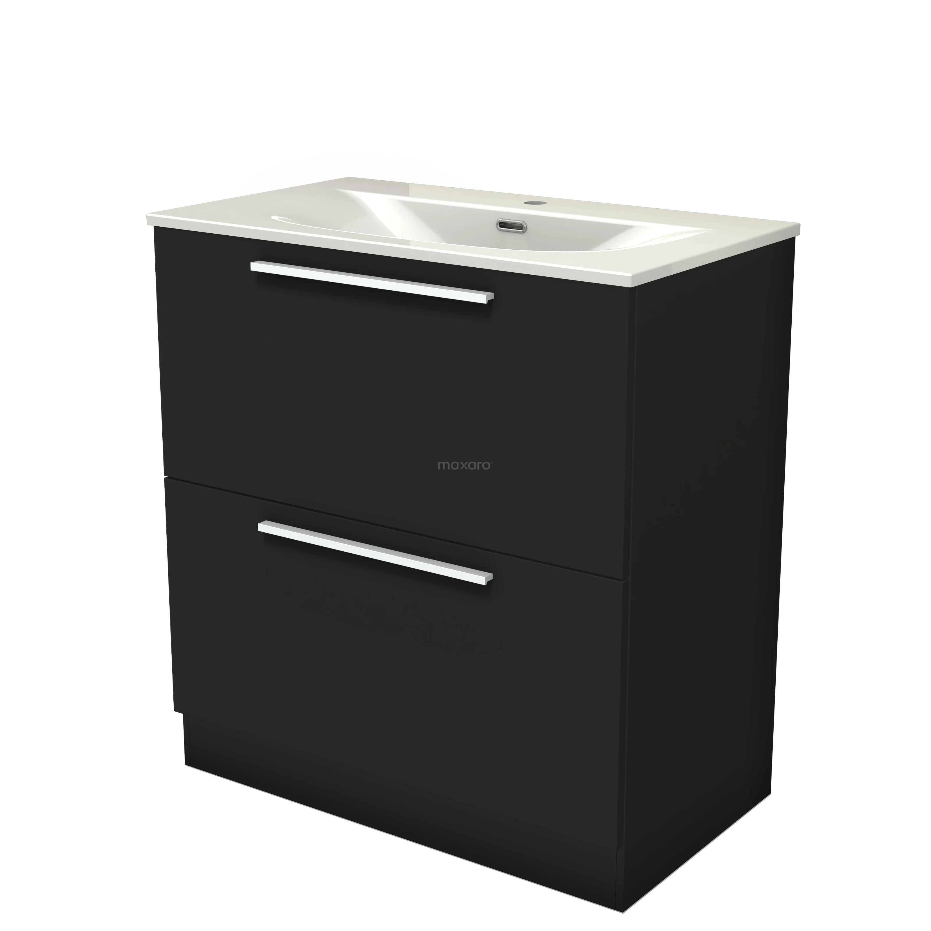 Modulo Bathroom furniture with sink | 80 cm Matte black Flat front Ceramic 2 high drawers standing drawers under each other