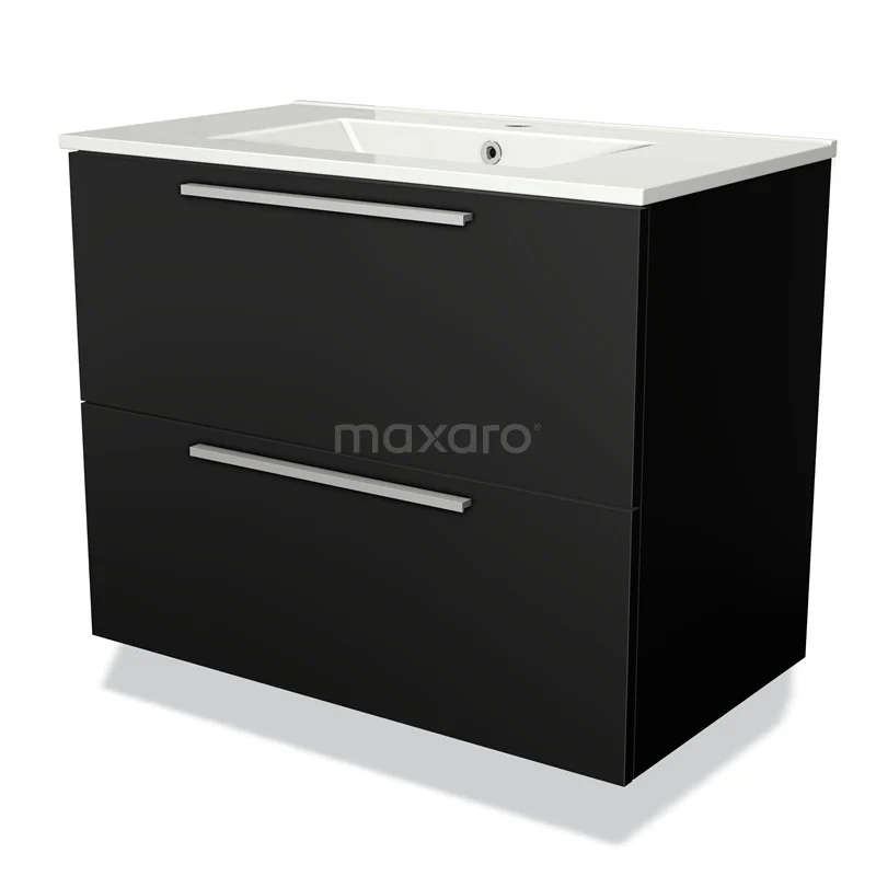 Modulo Bathroom furniture with sink | 80 cm Matte black Flat front Ceramic 2 Stacked drawers