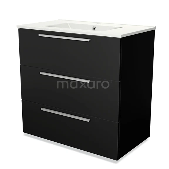 Modulo Bathroom furniture with sink | 80 cm Matte black Flat front Ceramic 3 drawers