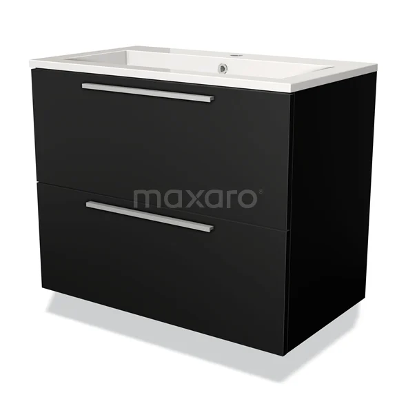 Modulo Bathroom furniture with sink | 80 cm Matte black Flat front Mineral marble 2 Stacked drawers