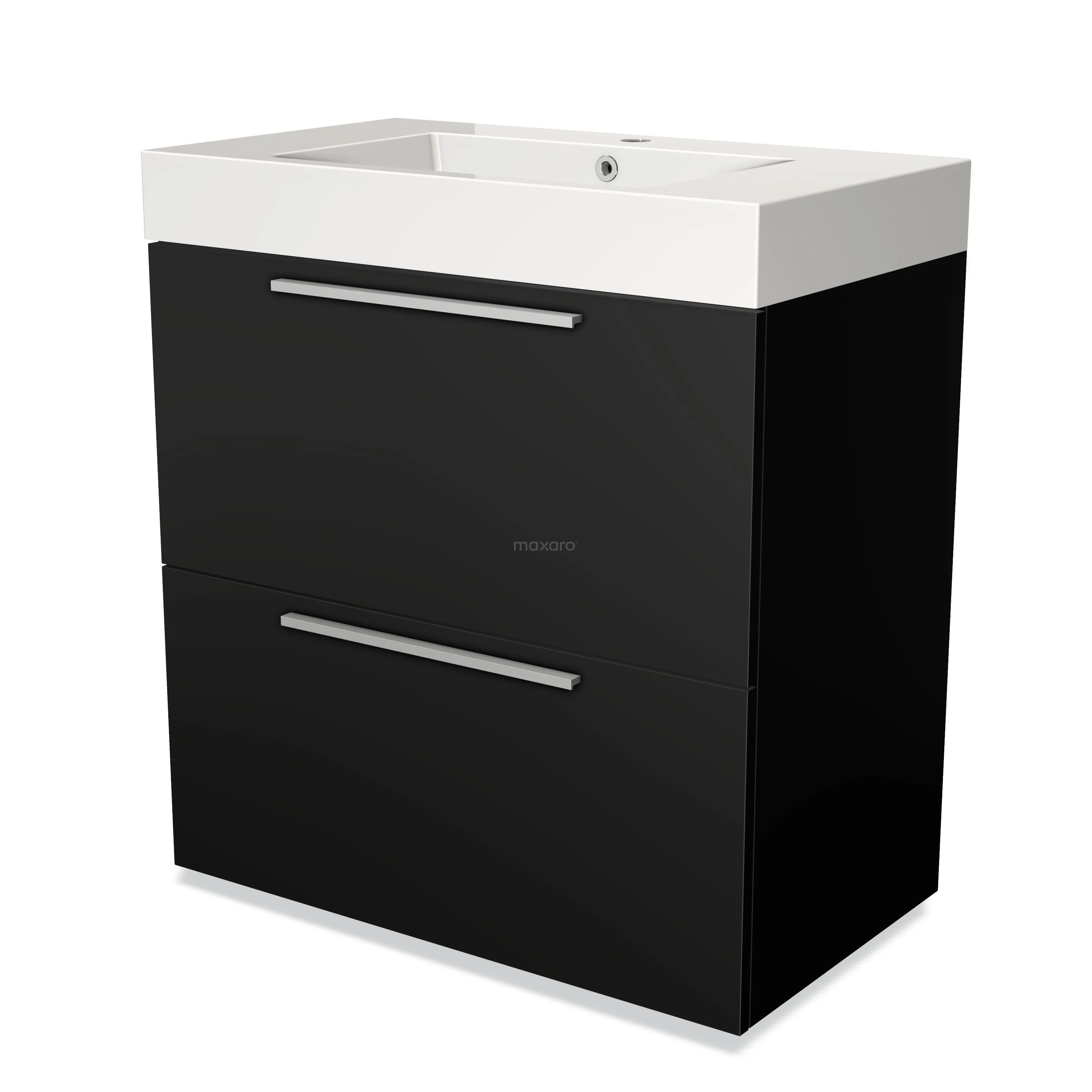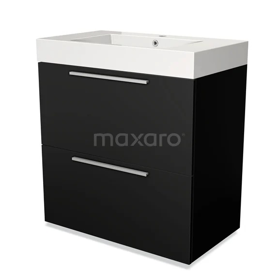 Modulo Bathroom furniture with sink | 80 cm Matte black Flat front Mineral marble 2 stacked drawers under each other