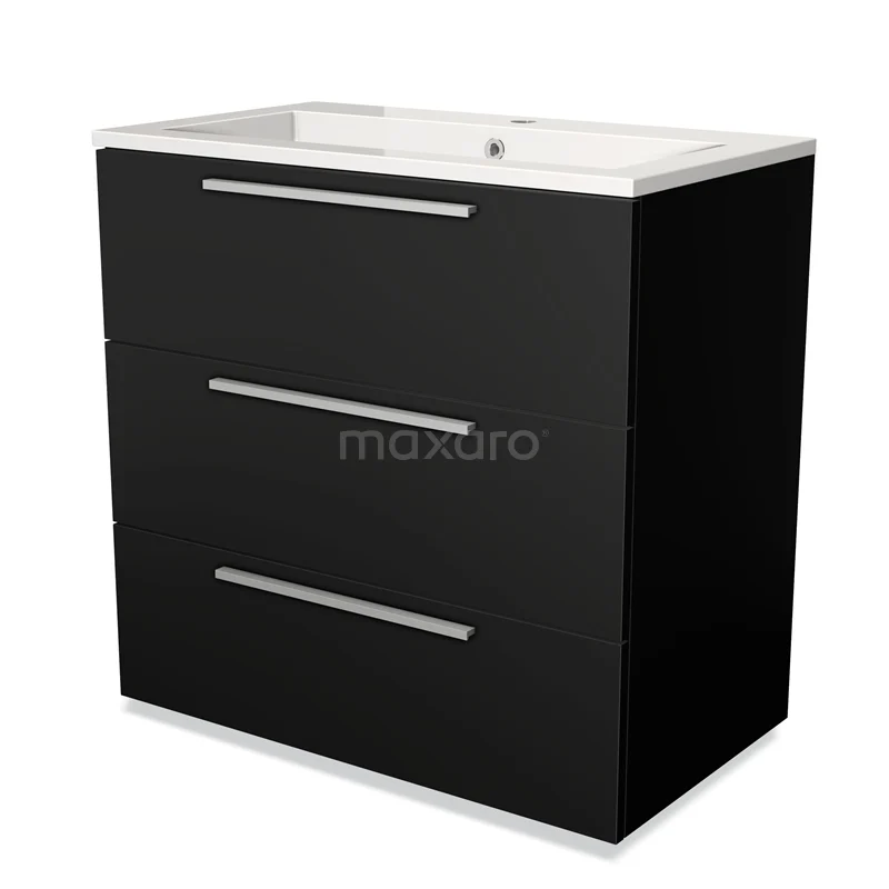 Modulo Bathroom furniture with sink | 80 cm Matte black Flat front Mineral marble 3 drawers