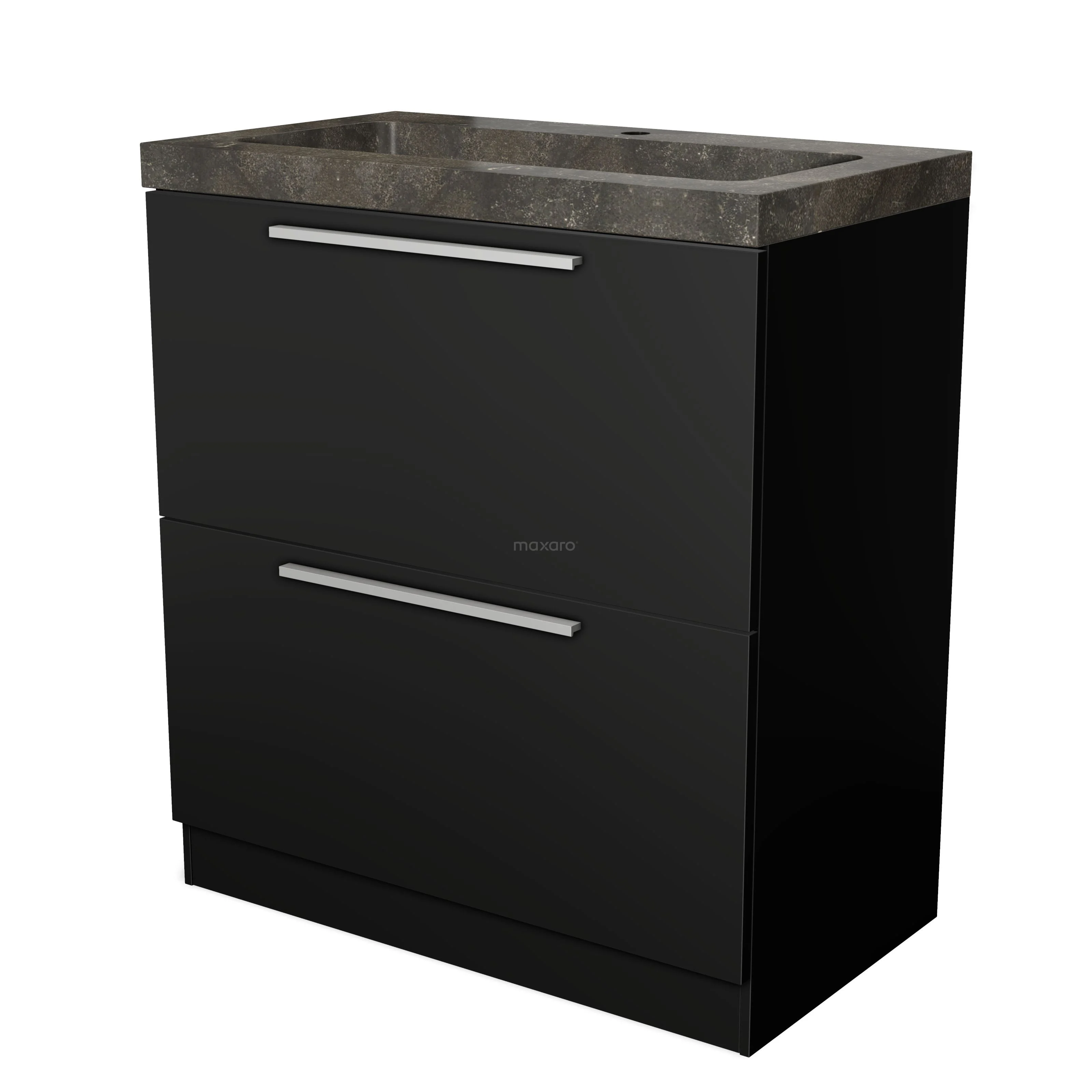 Modulo Bathroom furniture with sink | 80 cm Matte black Flat front Natural stone 2 high drawers standing drawers under each other