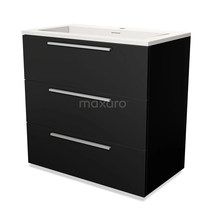 Modulo Bathroom furniture with sink | 80 cm Matte black Flat front Solid surface 3 drawers