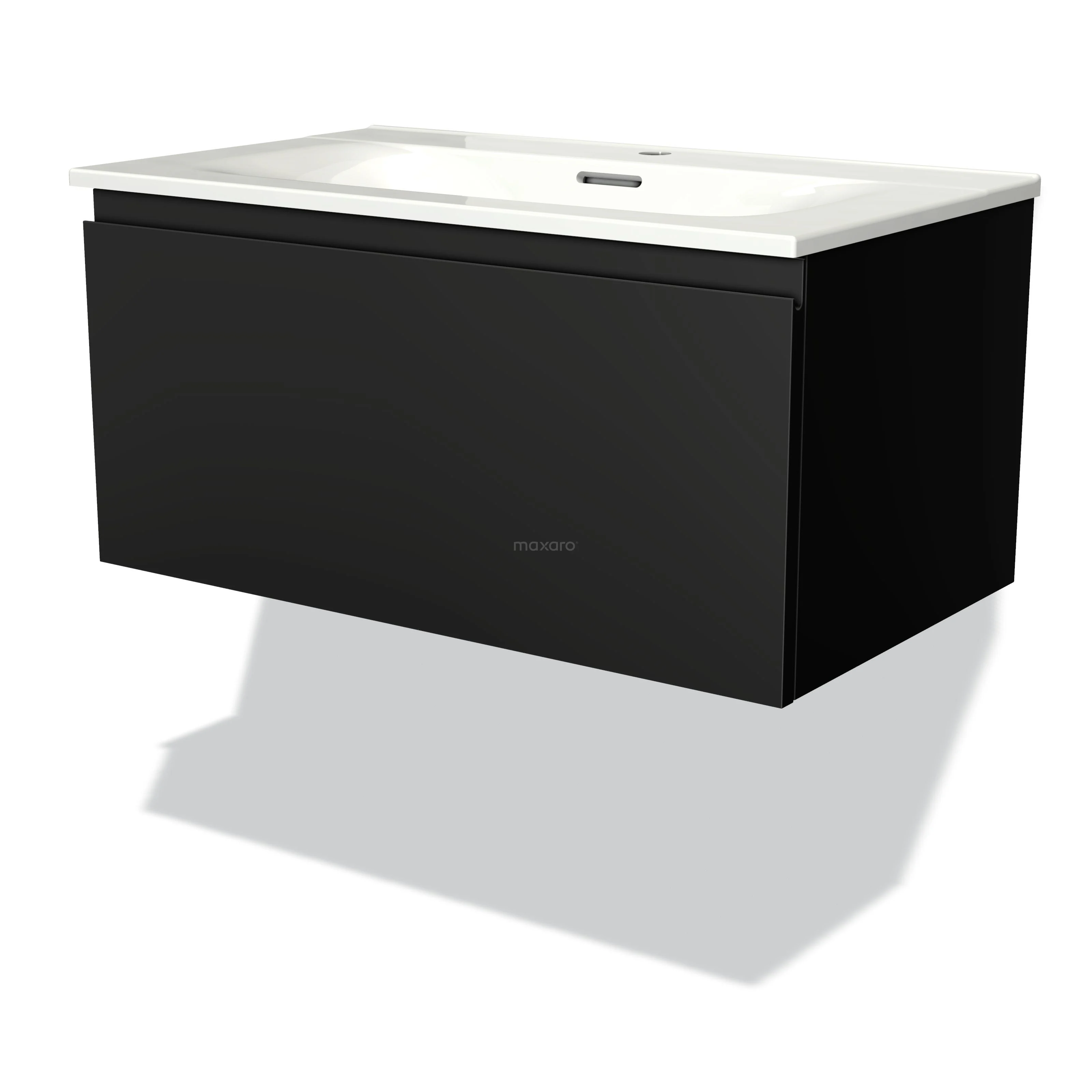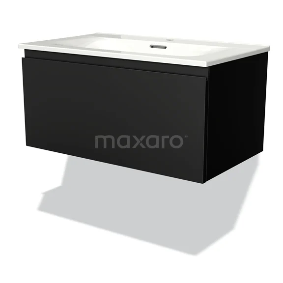 Modulo Bathroom furniture with sink | 80 cm Matte black Handle-less front Ceramic 1 drawer