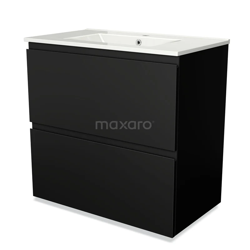 Modulo Bathroom furniture with sink | 80 cm Matte black Handle-less front Ceramic 2 stacked drawers under each other