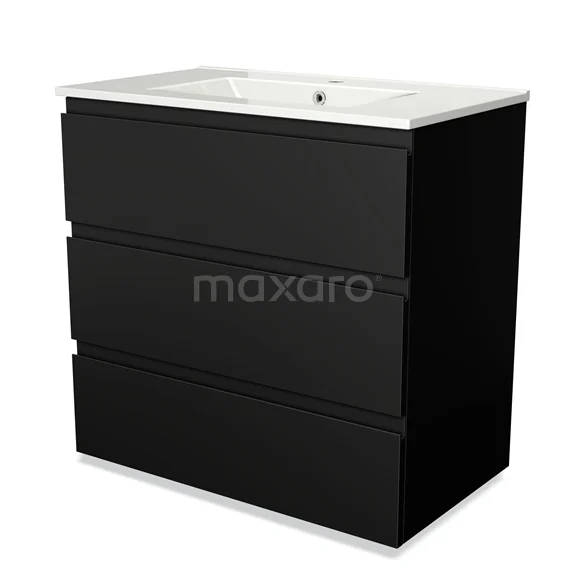 Modulo Bathroom furniture with sink | 80 cm Matte black Handle-less front Ceramic 3 drawers