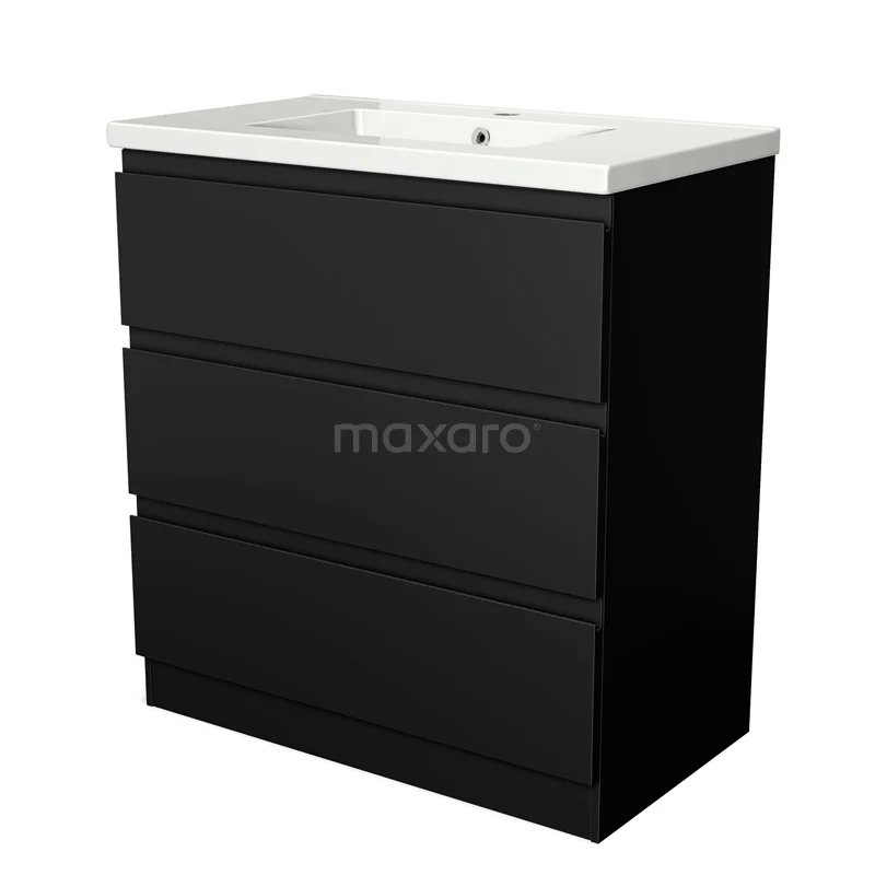 Modulo Bathroom furniture with sink | 80 cm Matte black Handle-less front Ceramic 3 standing drawers