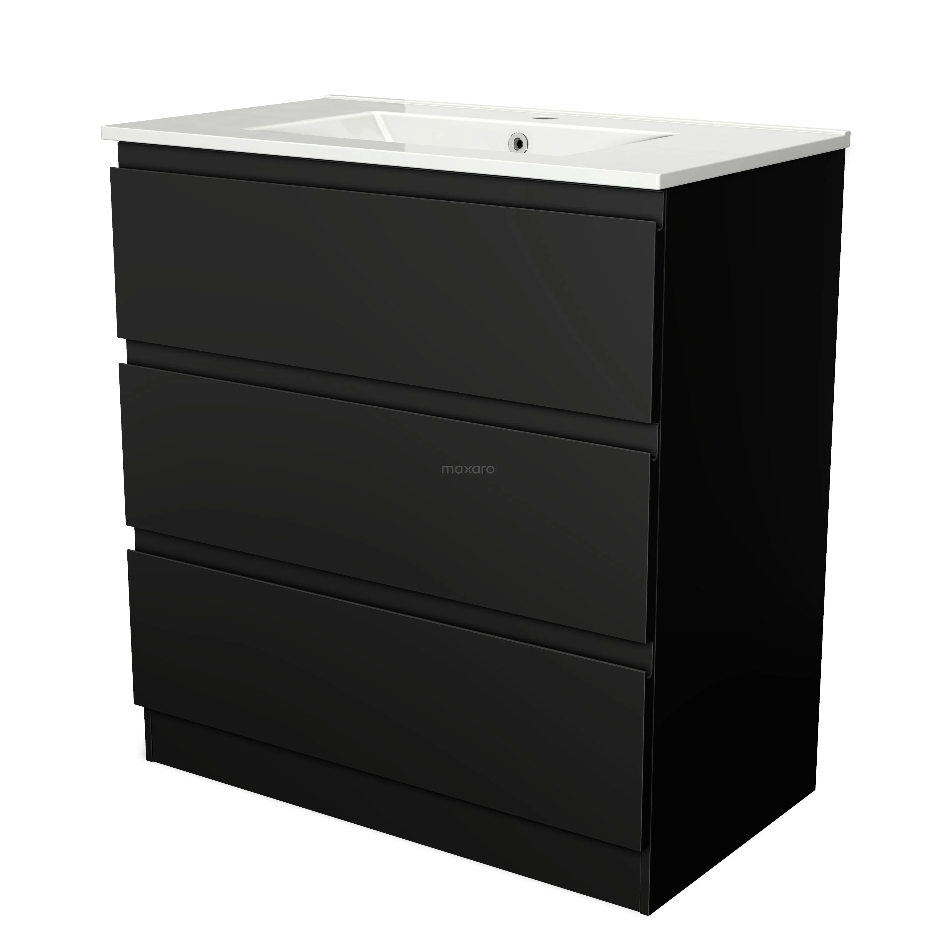 Modulo Bathroom furniture with sink | 80 cm Matte black Handle-less front Ceramic 3 standing drawers