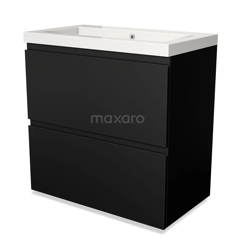 Modulo Bathroom furniture with sink | 80 cm Matte black Handle-less front Mineral marble 2 stacked drawers under each other