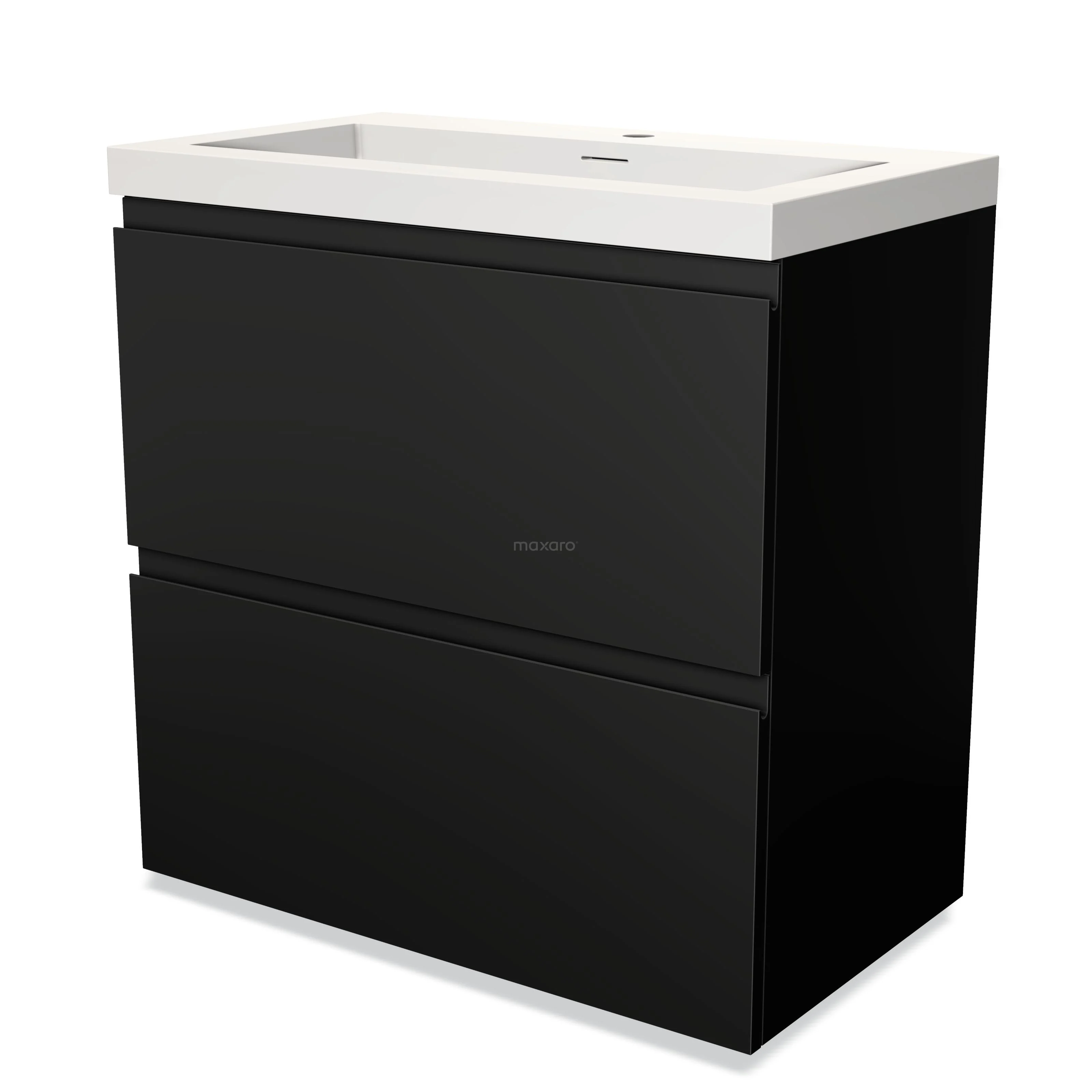 Modulo Bathroom furniture with sink | 80 cm Matte black Handle-less front Solid surface 2 stacked drawers under each other