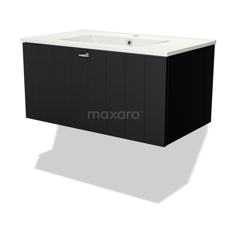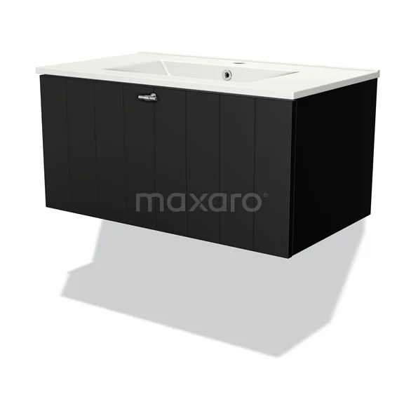 Modulo Bathroom furniture with sink | 80 cm Matte black Slat front Ceramic 1 drawer