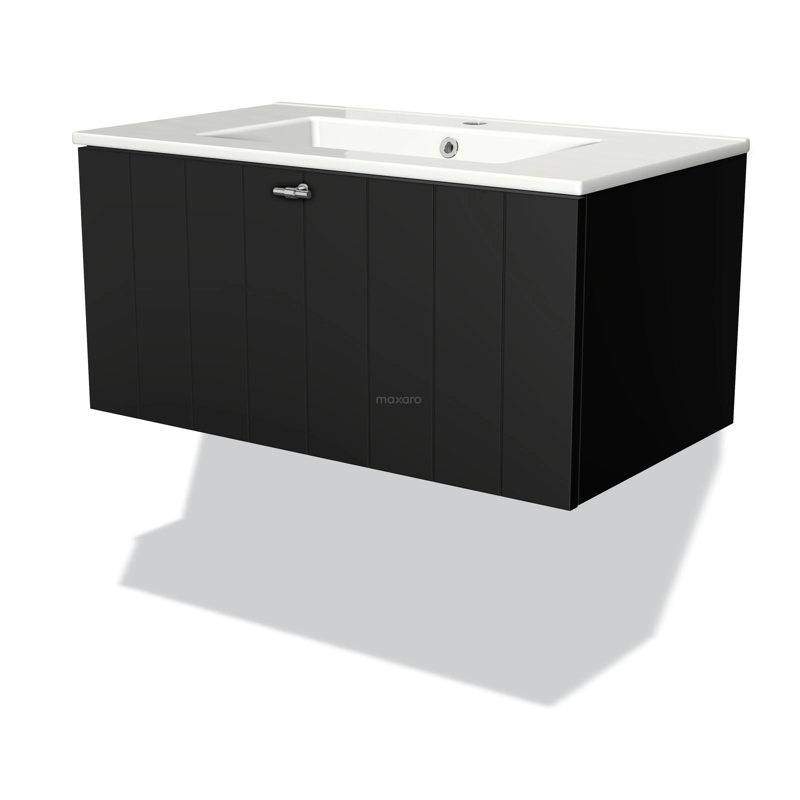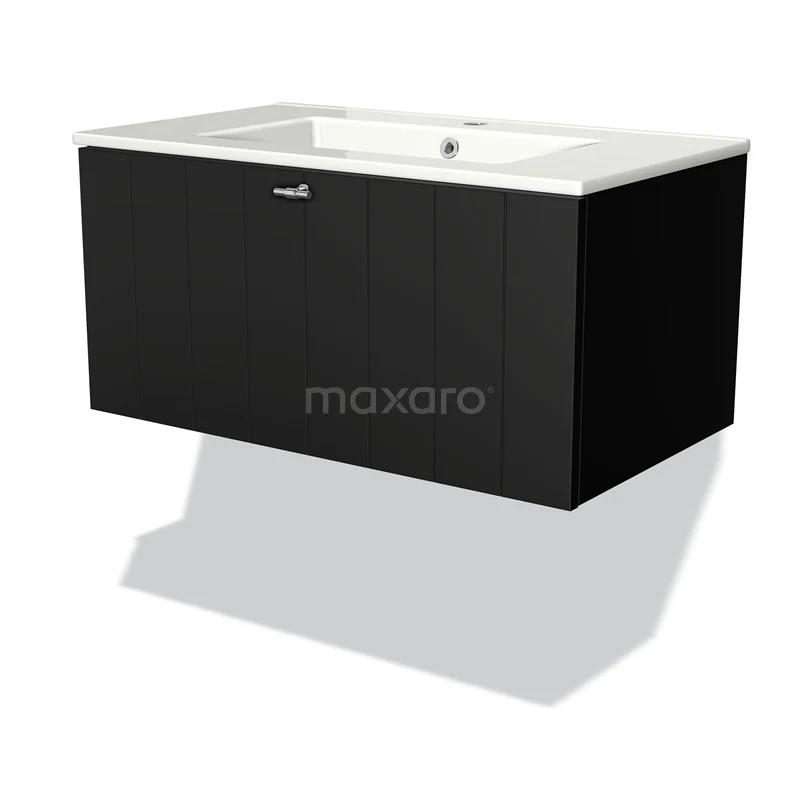 Modulo Bathroom furniture with sink | 80 cm Matte black Slat front Ceramic 1 drawer