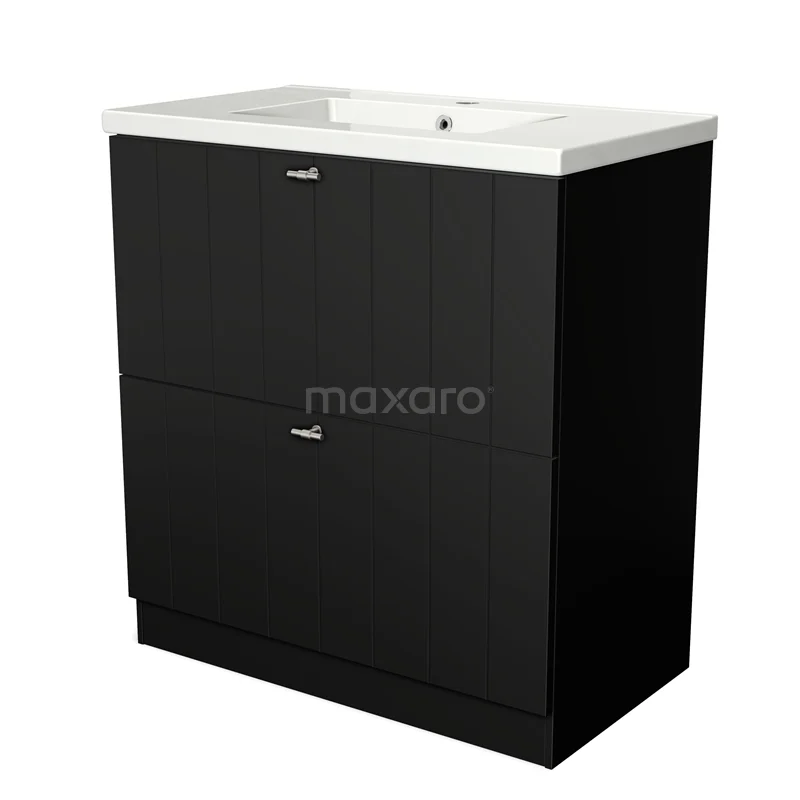 Modulo Bathroom furniture with sink | 80 cm Matte black Slat front Ceramic 2 high drawers standing drawers under each other