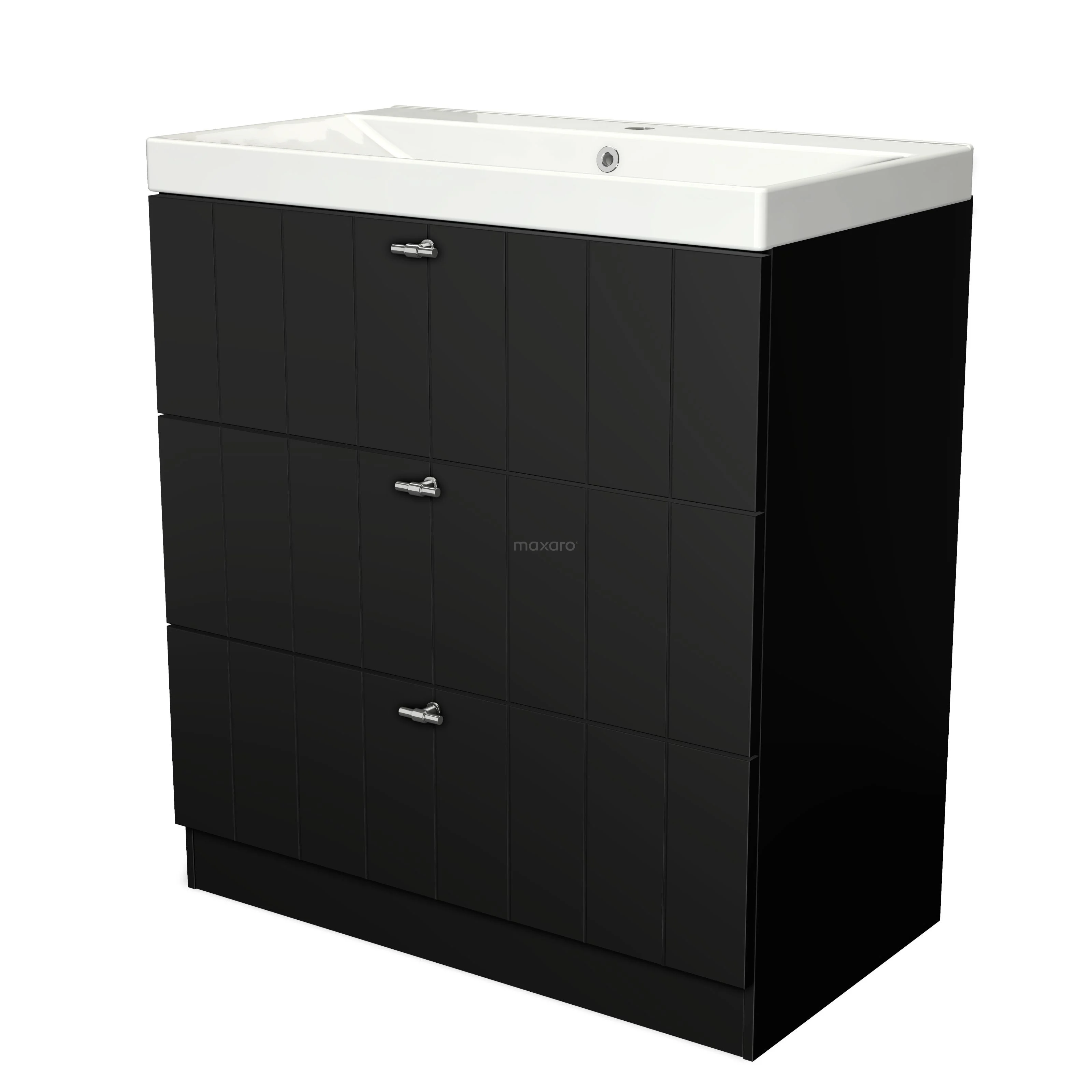 Modulo Bathroom furniture with sink | 80 cm Matte black Slat front Ceramic 3 standing drawers