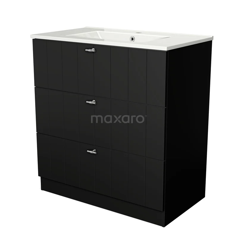 Modulo Bathroom furniture with sink | 80 cm Matte black Slat front Ceramic 3 standing drawers
