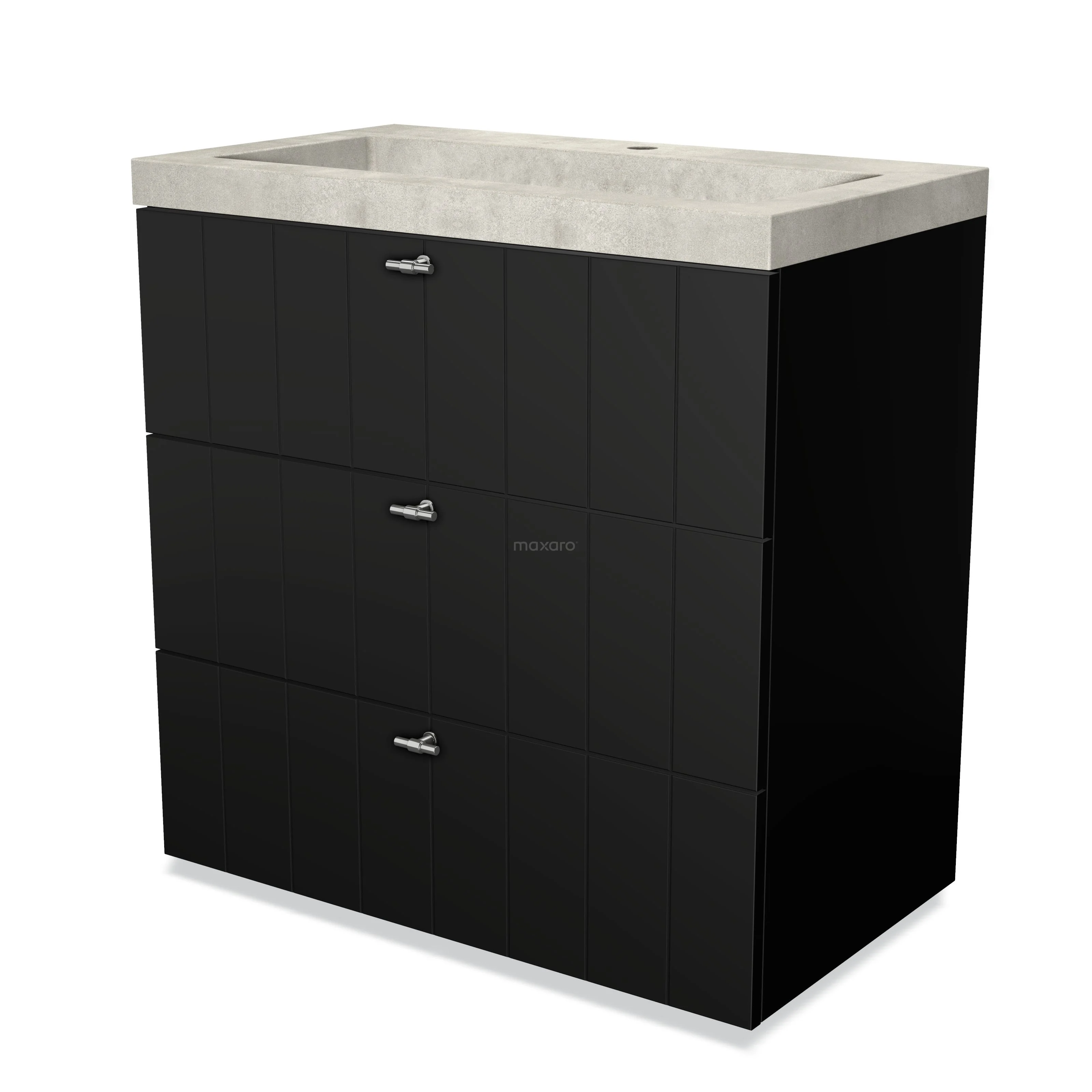 Modulo Bathroom furniture with sink | 80 cm Matte black Slat front Concrete 3 drawers