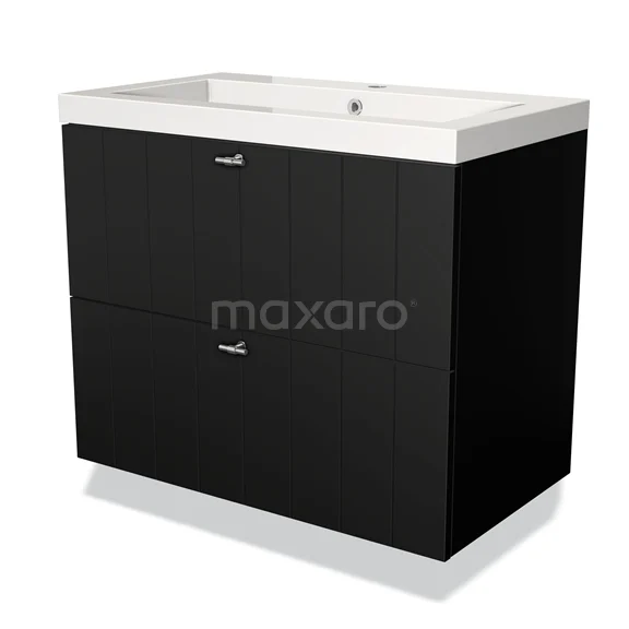 Modulo Bathroom furniture with sink | 80 cm Matte black Slat front Mineral marble 2 Stacked drawers