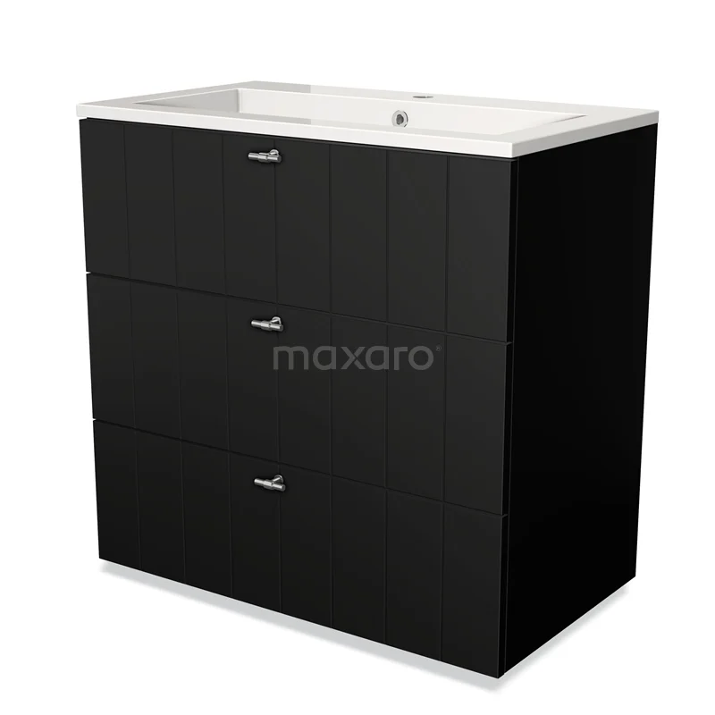 Modulo Bathroom furniture with sink | 80 cm Matte black Slat front Mineral marble 3 drawers